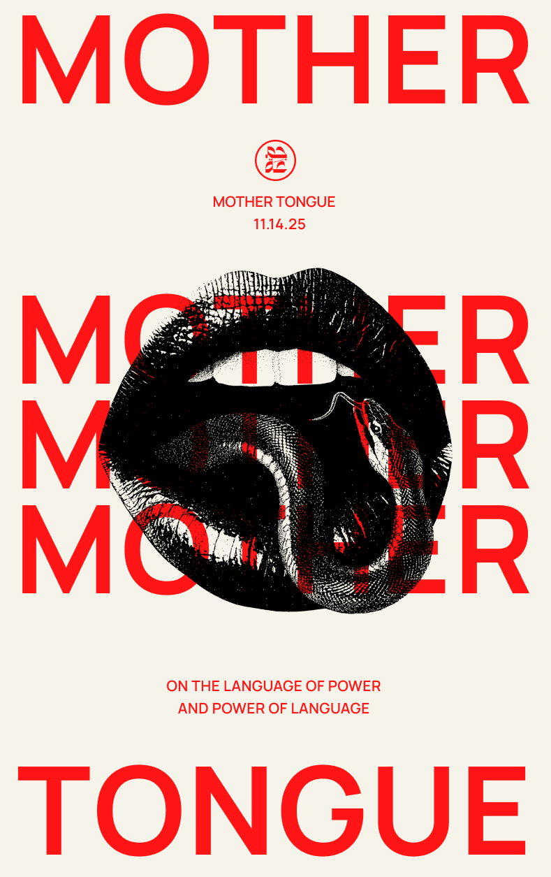 Dismantling the Master’s Tongue. Architectures of control: language as distortion, reality-bending. How empires, institutions, and ideologies shape words to reshape reality. Words as tools to both dismantle and build again. Language for what comes next. Creating new words for new worlds.