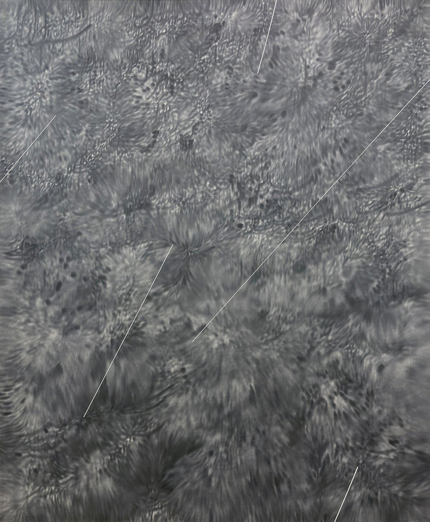 Pakistani artist Muzzumil Ruheel’s latest exhibition, his 21st solo show, jumps into the black hole of emptiness with quiet respect, reinterpreting traditional calligraphy into experimental forms that speak beyond words.