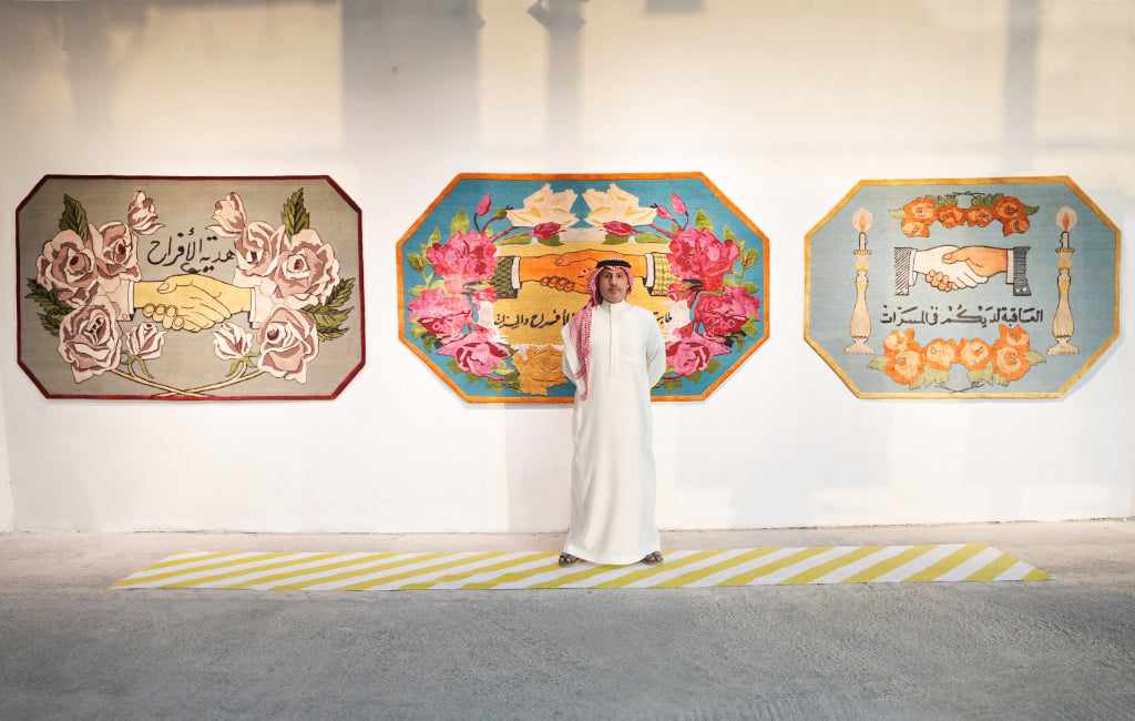 Sultan bin Fahad is a Saudi prince and artist whose multidisciplinary practice delves into the layered textures of cultural identity. Working across sculpture, painting, fiber, and installation, he draws on Saudi Arabia’s eclectic material culture - flasks, prayer mats, chandeliers, wedding boxes, air conditioning units - objects both everyday and charged with meaning. His work thrives in contrast: the discarded and the divine, the sacred and the mundane, the broken and the beautiful. Scavenged artifacts are reassembled into compositions that hold the weight of history, reimagined in whimsical designs.