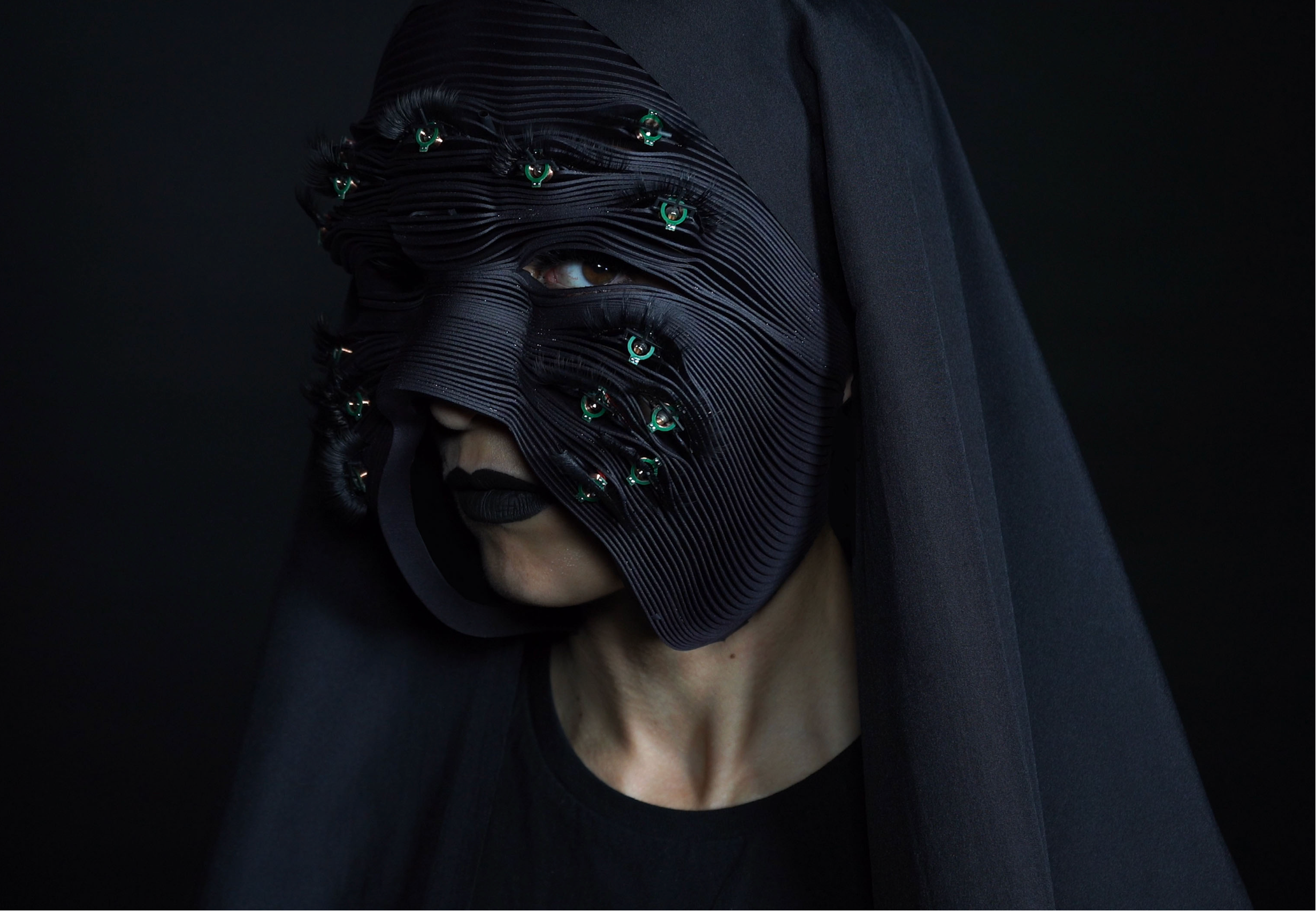 This project is inspired by the intriguing historical masks worn by the Bandari women from southern Iran. Legend has it that these masks were developed during Portuguese colonial rule, as a way of protecting the wearer from the gaze of slave masters looking for pretty women. Viewed from a contemporary perspective, these masks can be seen as a means of oppressing women under patriarchal colonial rule. In this project two masks begin to develop their own language to communicate with each other, blinking their eyelashes in rapid succession, using AI generated Morse code.