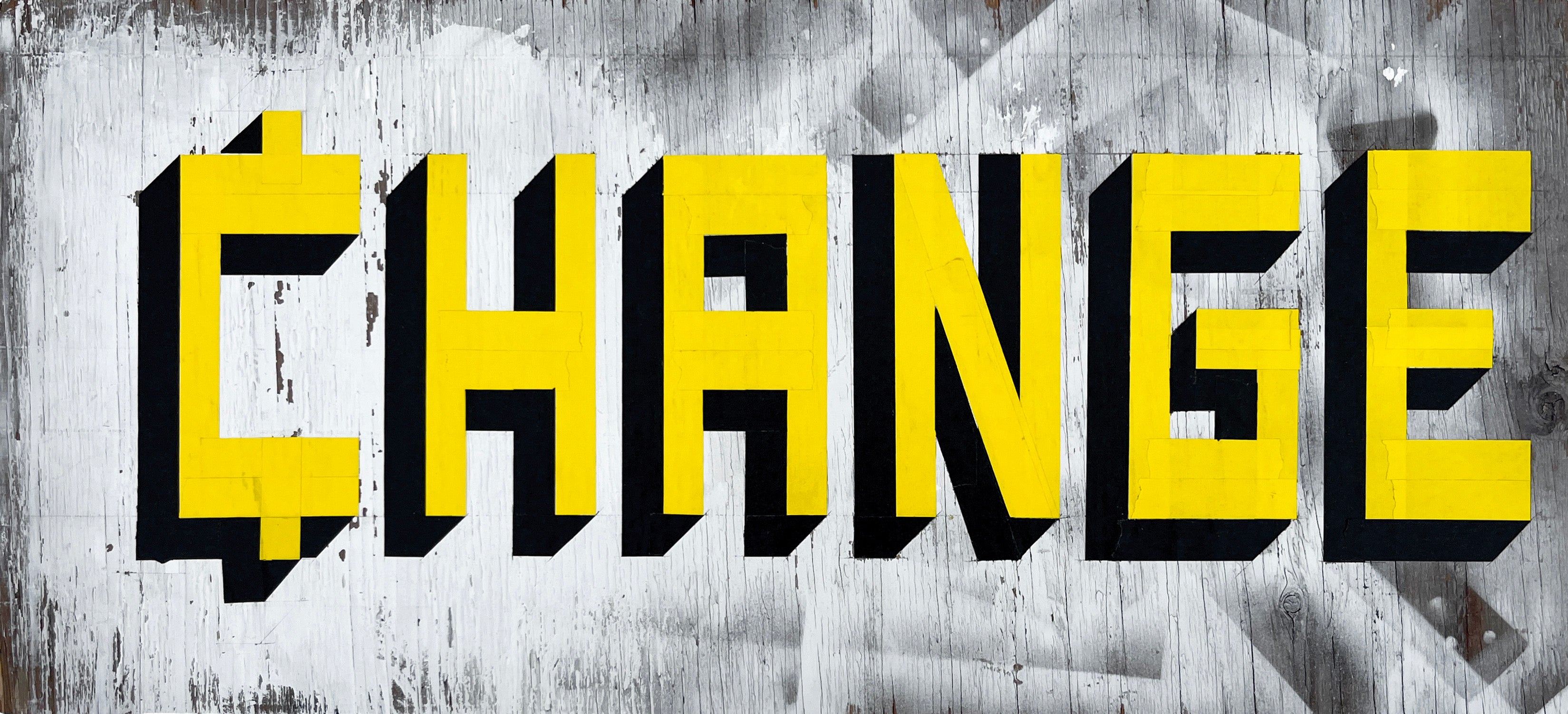 Change (Is Gonna Come) takes its title from the Sam Cooke song. The C is rendered as a cent symbol, implying multiple interpretations, from a societal change that is going to come to change as in coins given or asked for.